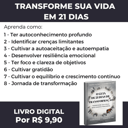 ✔ Livro digital – O Guia de 21 dias de transformação: Transforme sua vida e seus ganhos financeiros